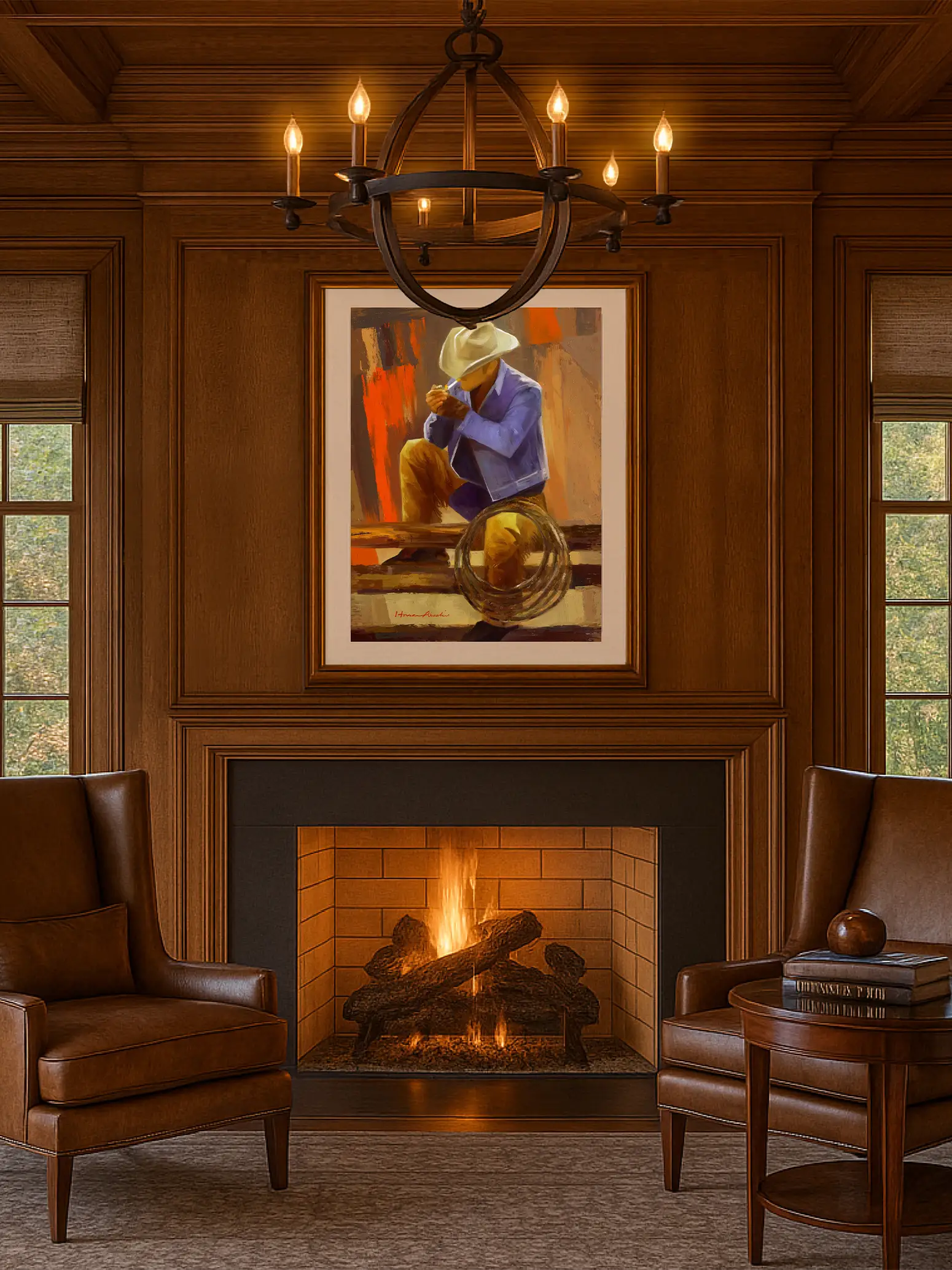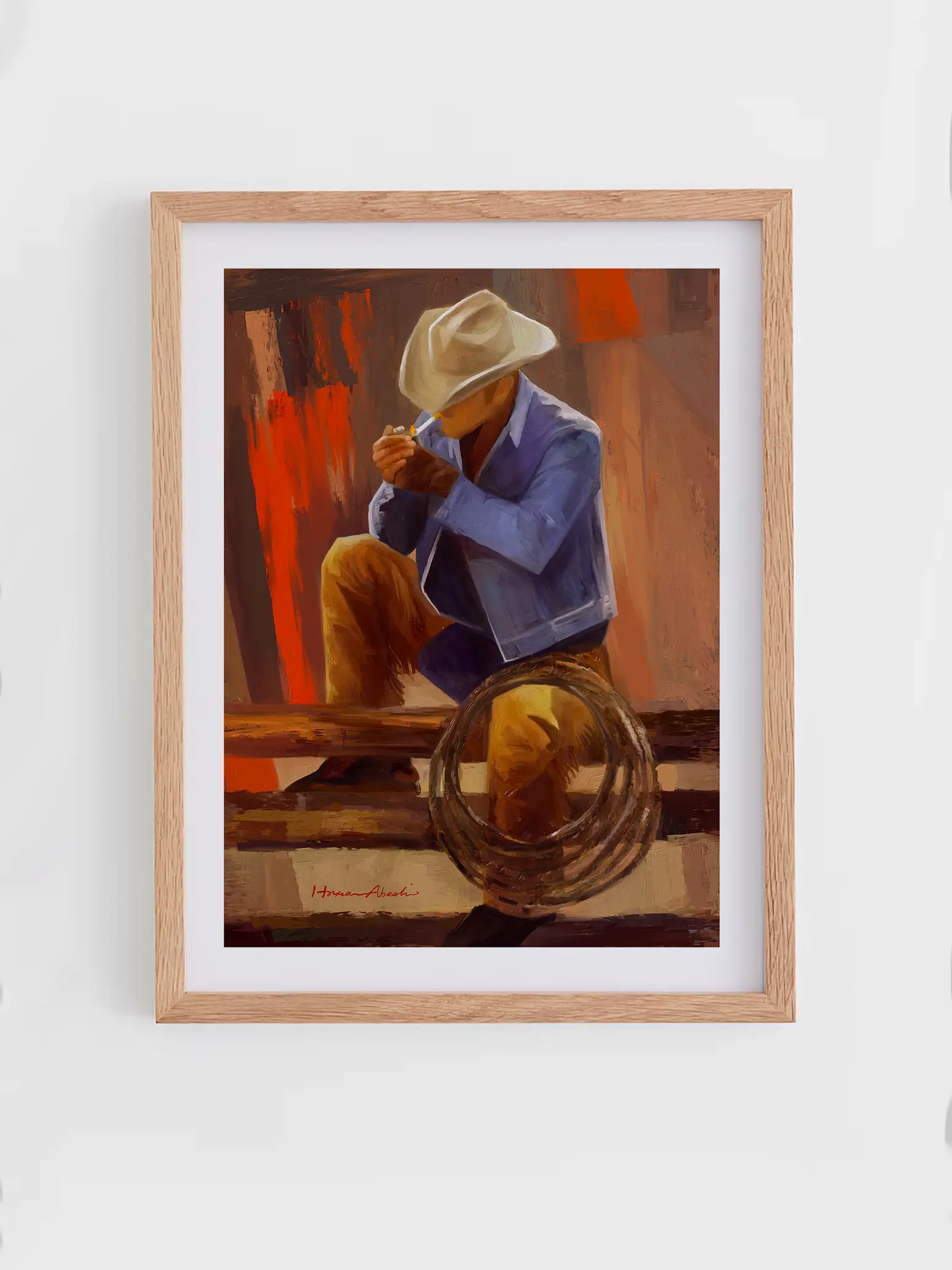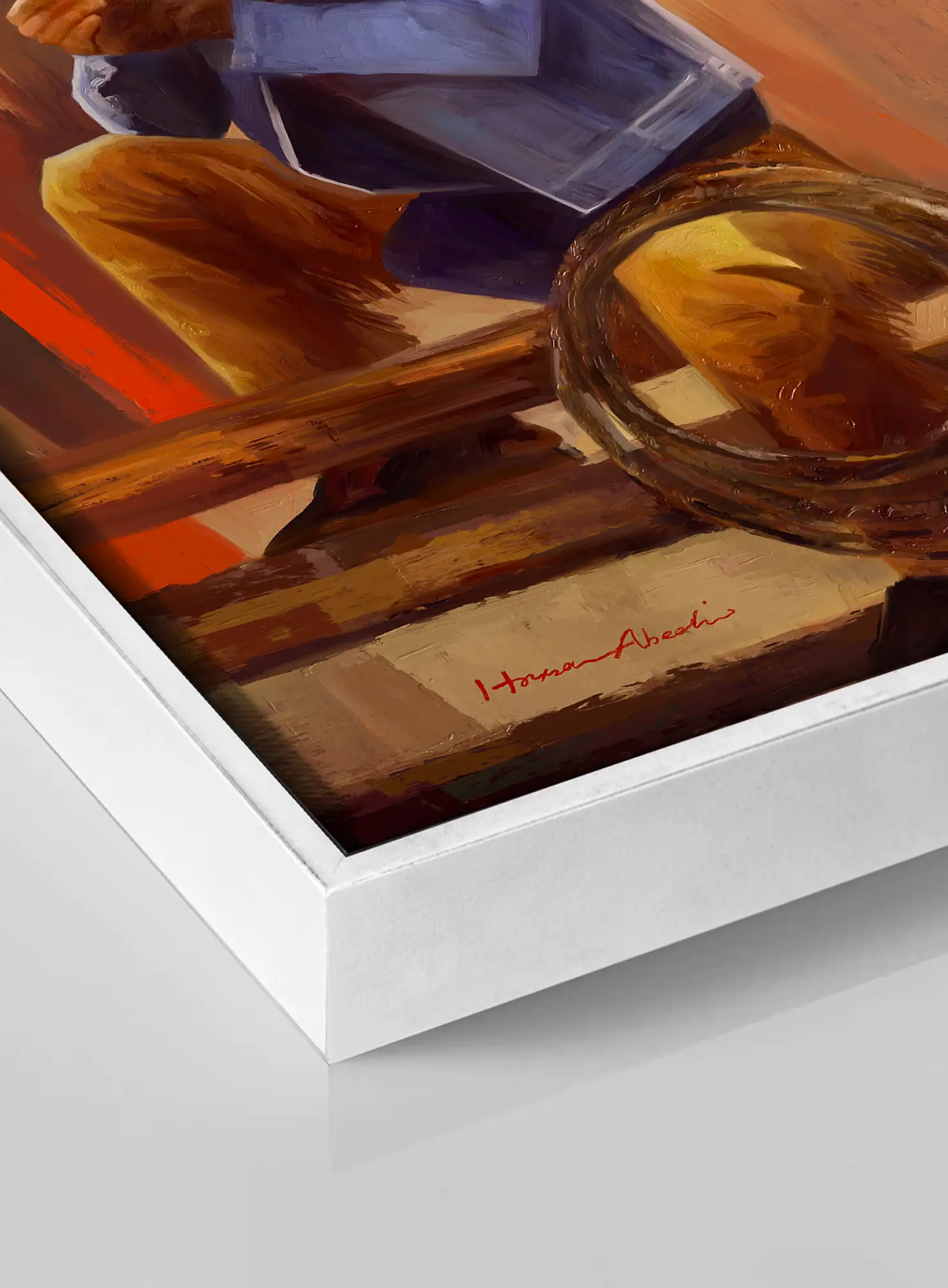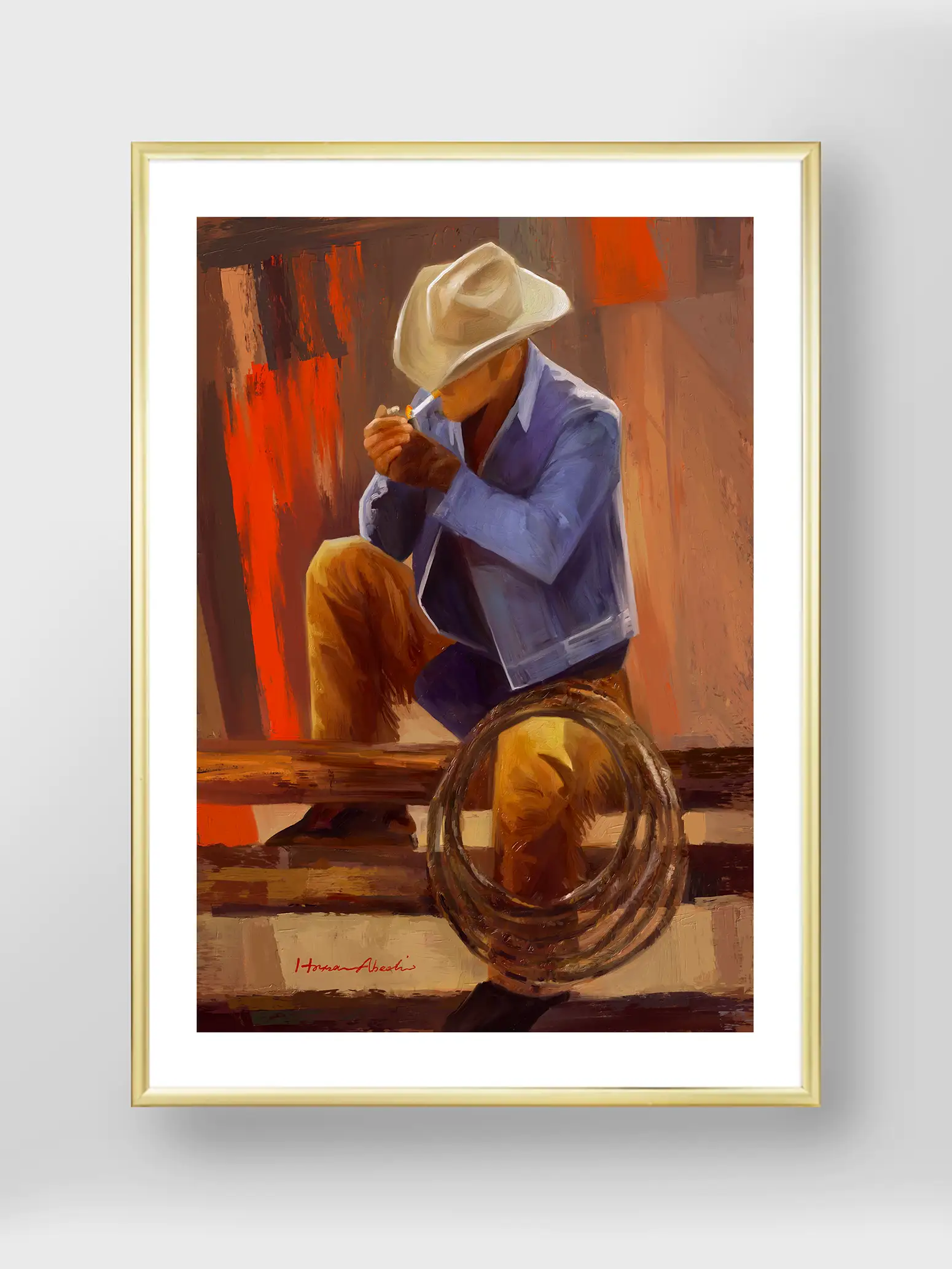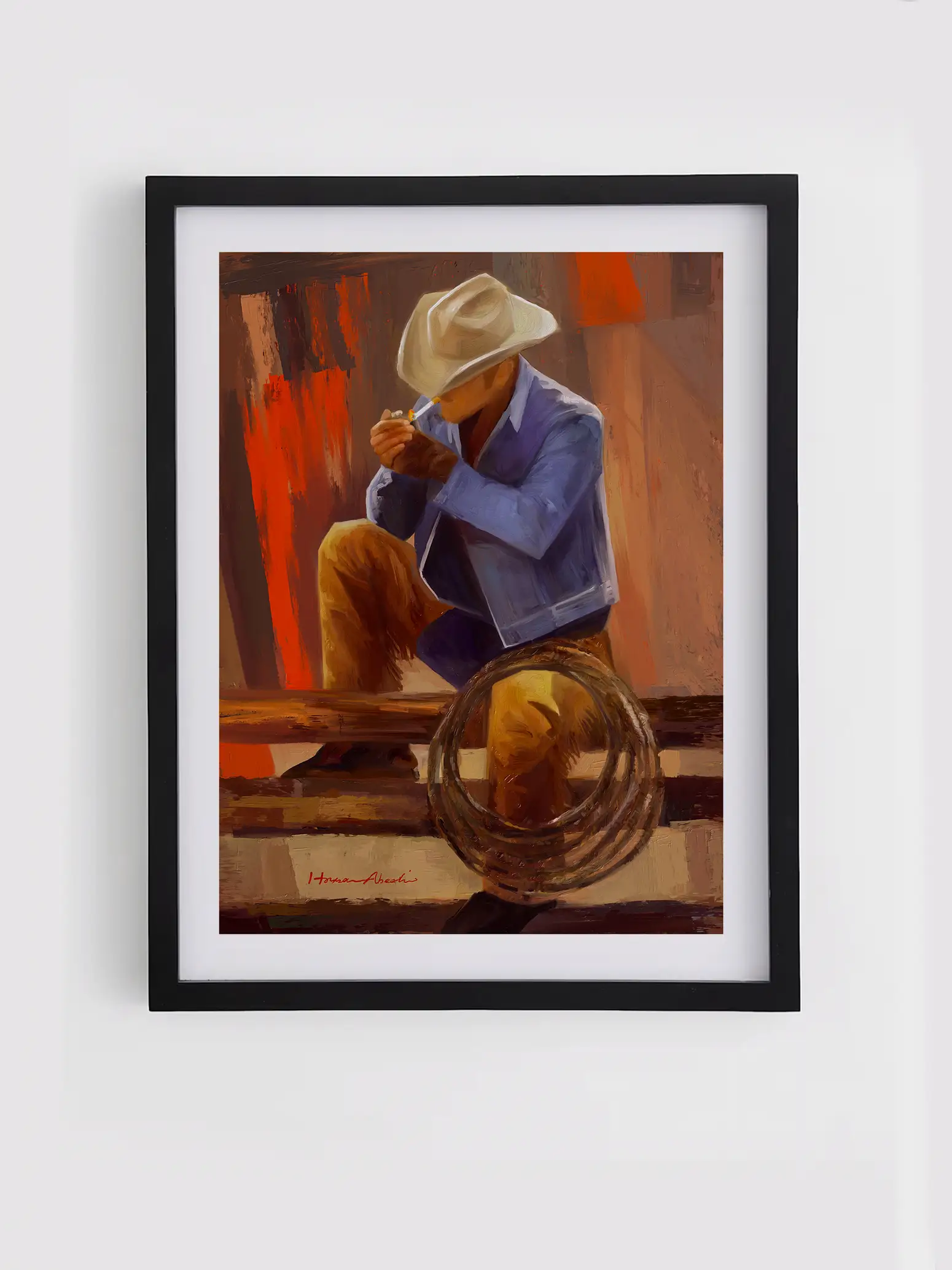 در این تابلو از ترکیب رنگی گرم استفاده شده است، مضمون تابلو جایست که حس درونگرایی و تامل را میتوان احساس کرد، انسانی میان کار و خلوت خود.