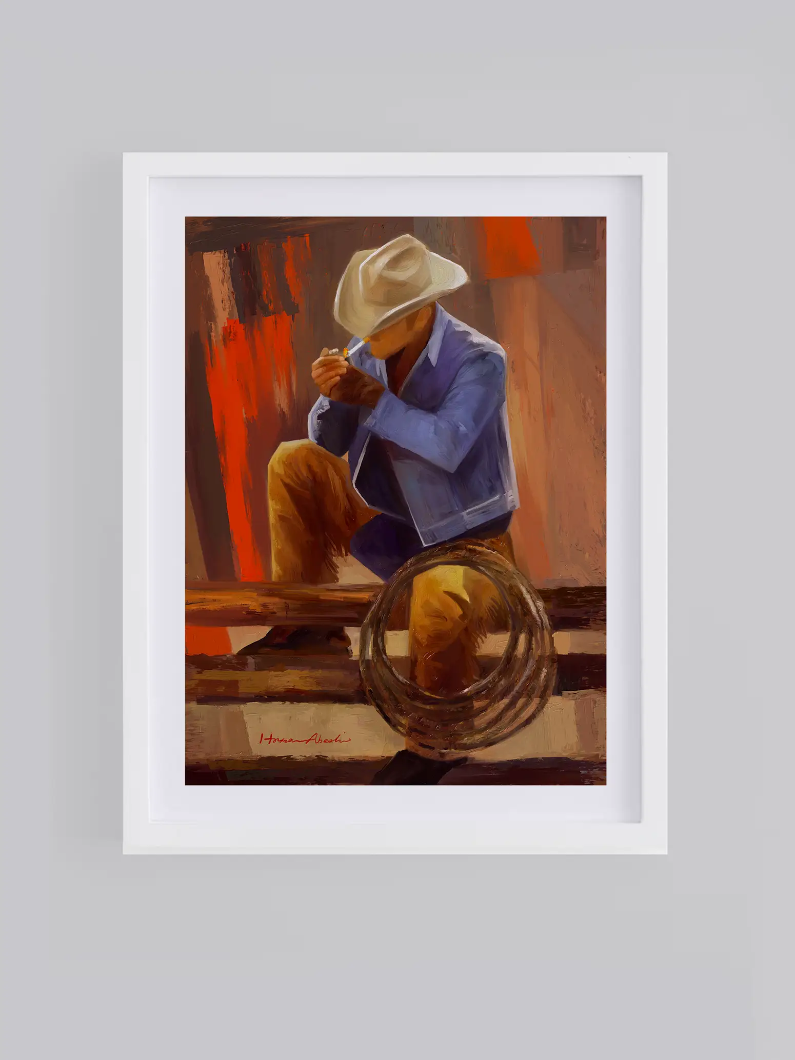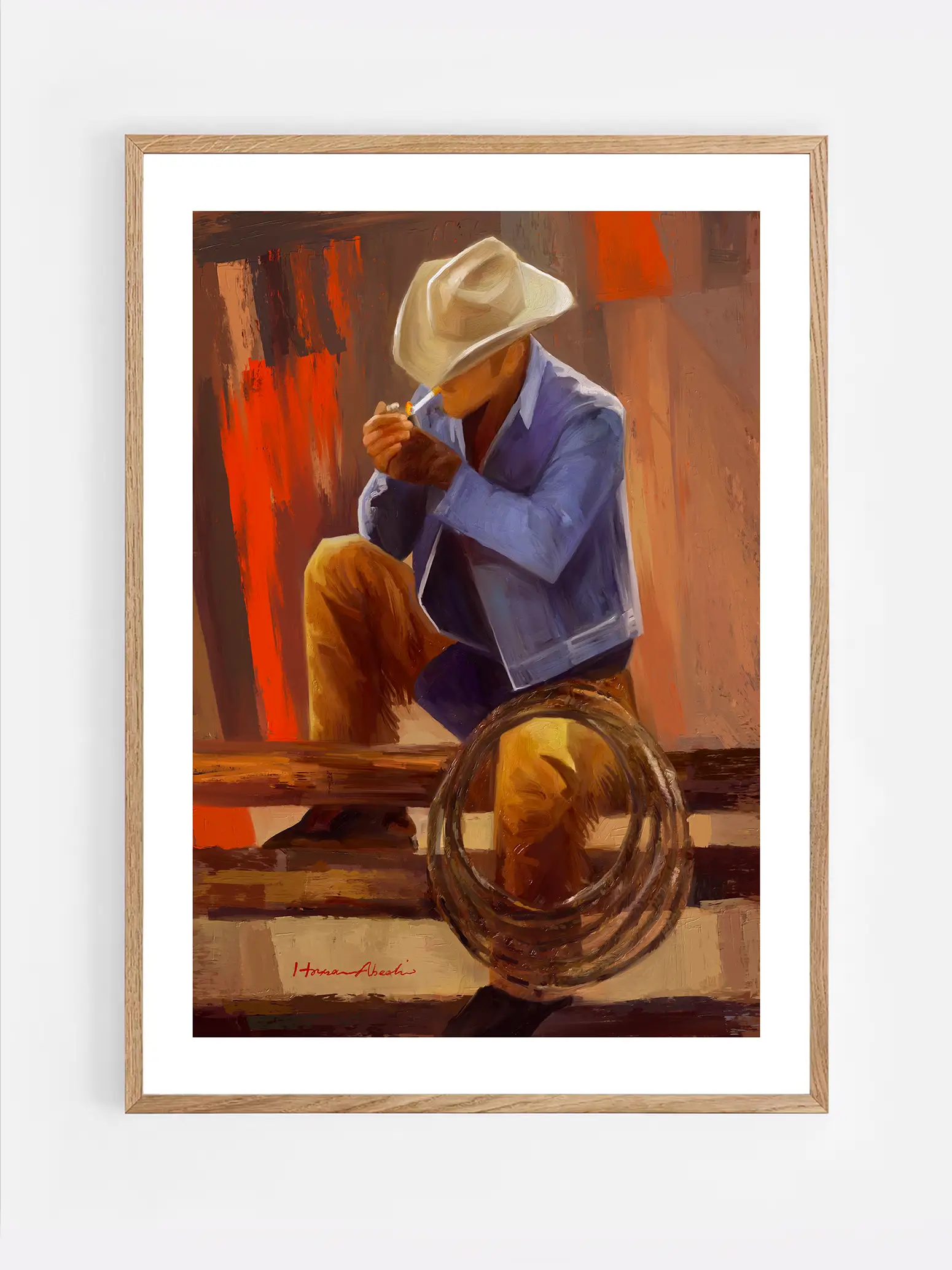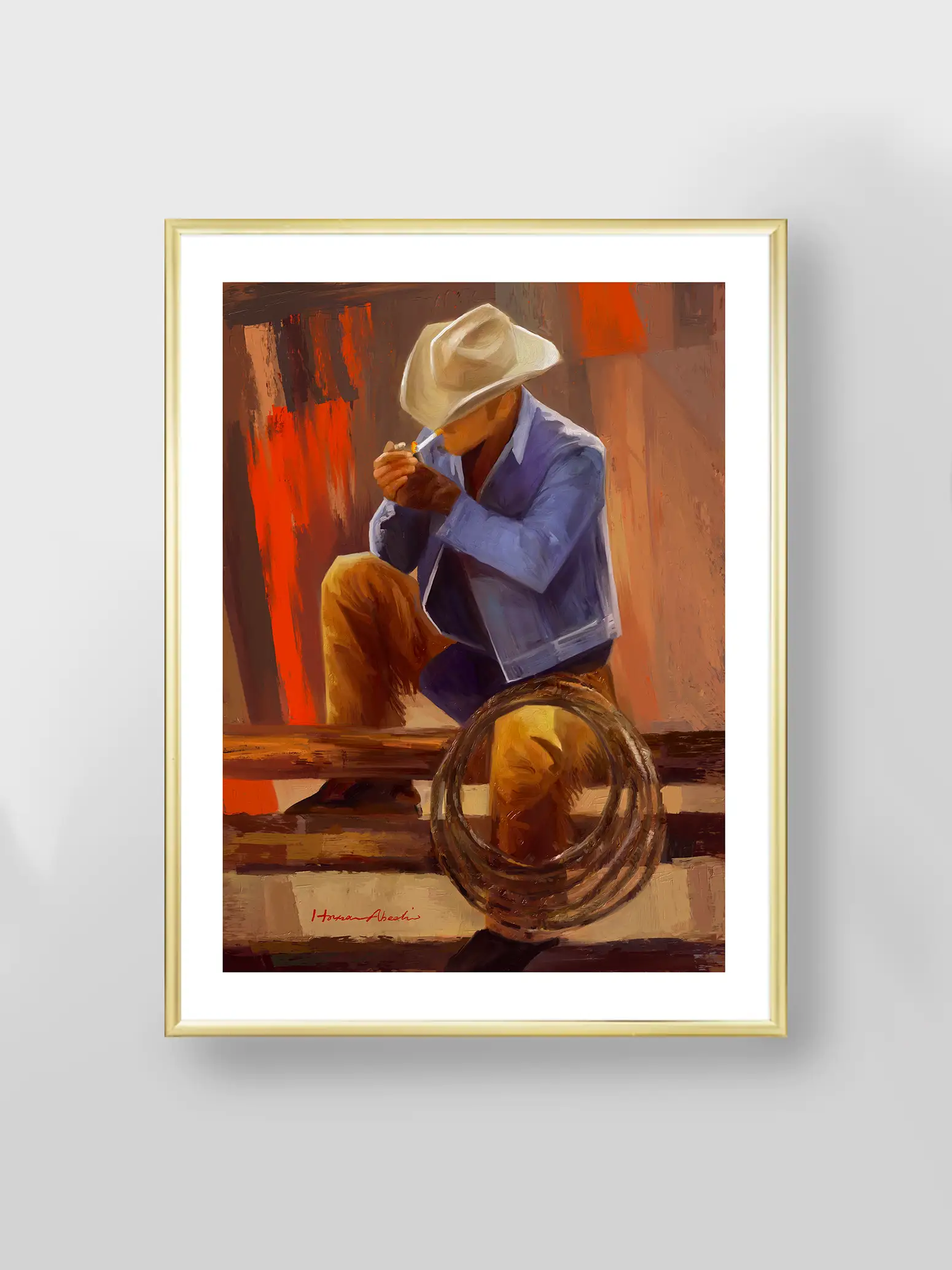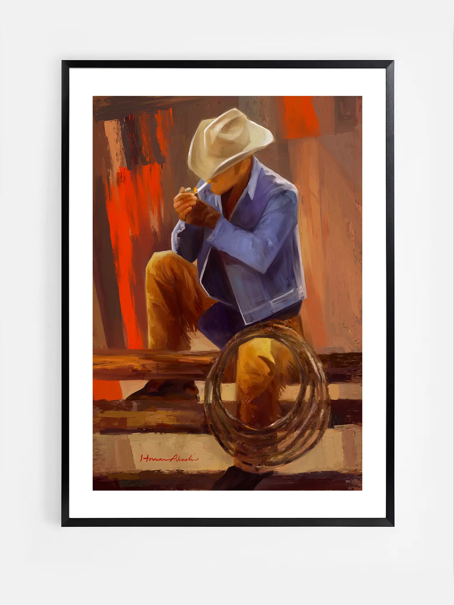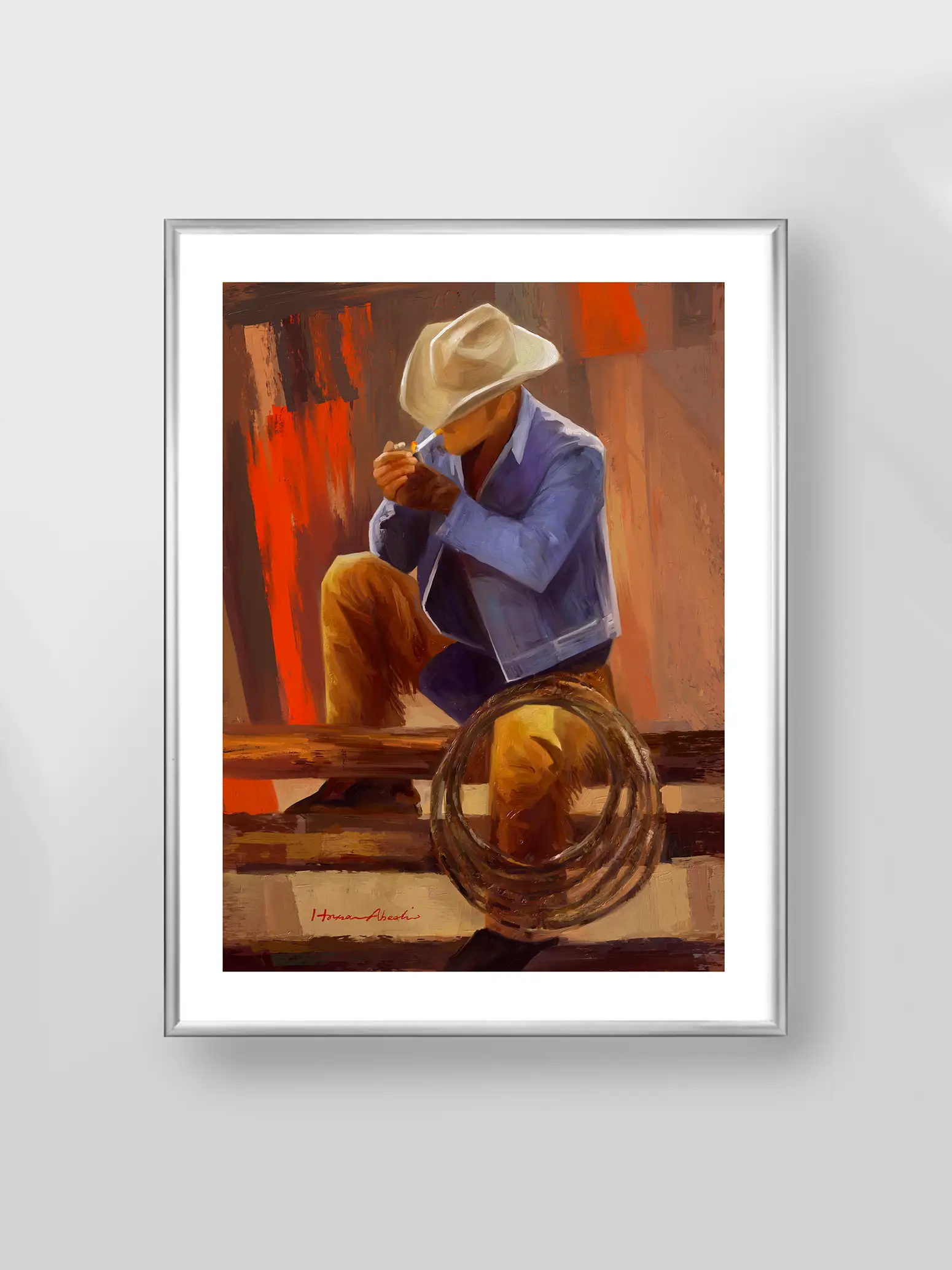در این تابلو از ترکیب رنگی گرم استفاده شده است، مضمون تابلو جایست که حس درونگرایی و تامل را میتوان احساس کرد، انسانی میان کار و خلوت خود.